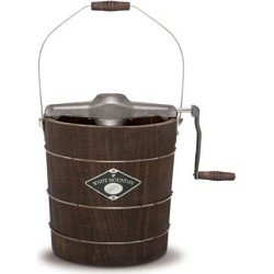 4-quart handbook hand-crank ice-cream maker.Slide and lock brackets grasp and simply unlock the hand crank.Dark wooden stained bucket with galvanized hoops and electroplated becomings.Self-adjusting beech wood blades be certain uniform scraping of the ice-cream mixture.Tall stainless-steel canister; cast-iron dasher electroplated for stronger sturdiness... ... Read more White Mountain NDWMIMH411 4-Quart Wooden-Bucket Manual Hand-Crank Ice-Cream Maker